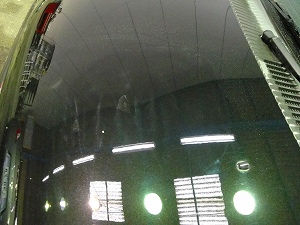 下記画像は磨きキズが入っている状態です。照明の周りがモヤモヤして見えます。(シングルポリッシャー・ウールパット・コンパウンド使用)